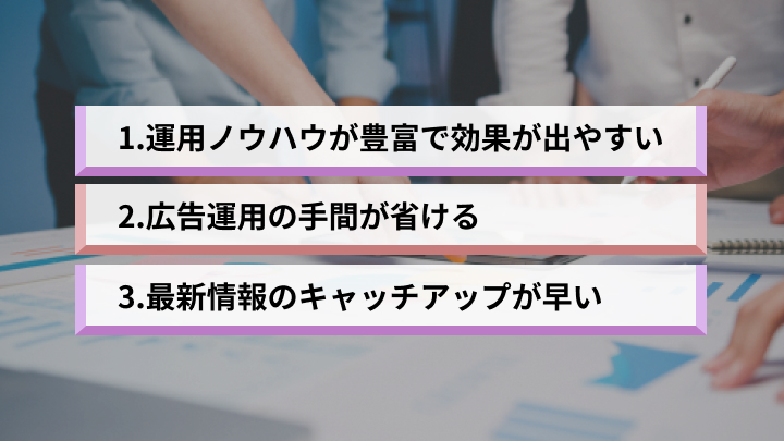 しかし、広告代理店に依頼すると「運用手数料が発生する」「自社内にノウハウが蓄積されない」などのデメリットがあります。運用代行を依頼する場合は、メリットとデメリットの両方を考慮して検討しましょう。