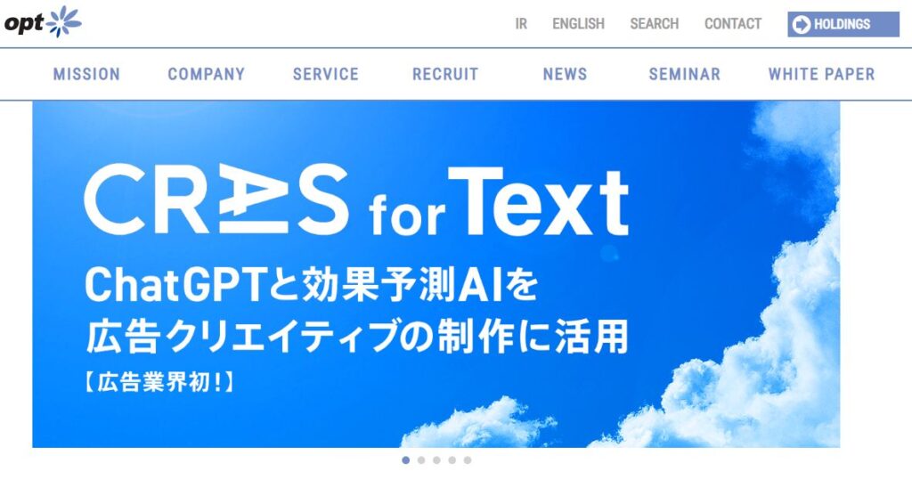 株式会社オプトは、「マーケティング」「広告代理」「テクノロジー」の3分野を中心に総合的なコンサルティングを行っています。