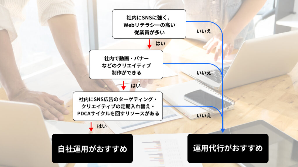 【自社or代行】SNS広告運用はどちらが良い?診断チャートと6つの成功ポイント