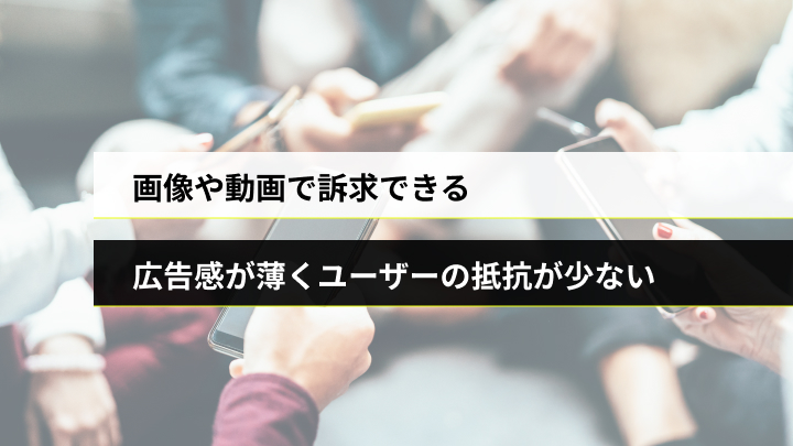 SNS広告の大きな特徴は、画像や動画で商品の魅力を伝えられること。テキストでは伝えにくいことも、画像や動画を通せば視覚的に伝えられます。