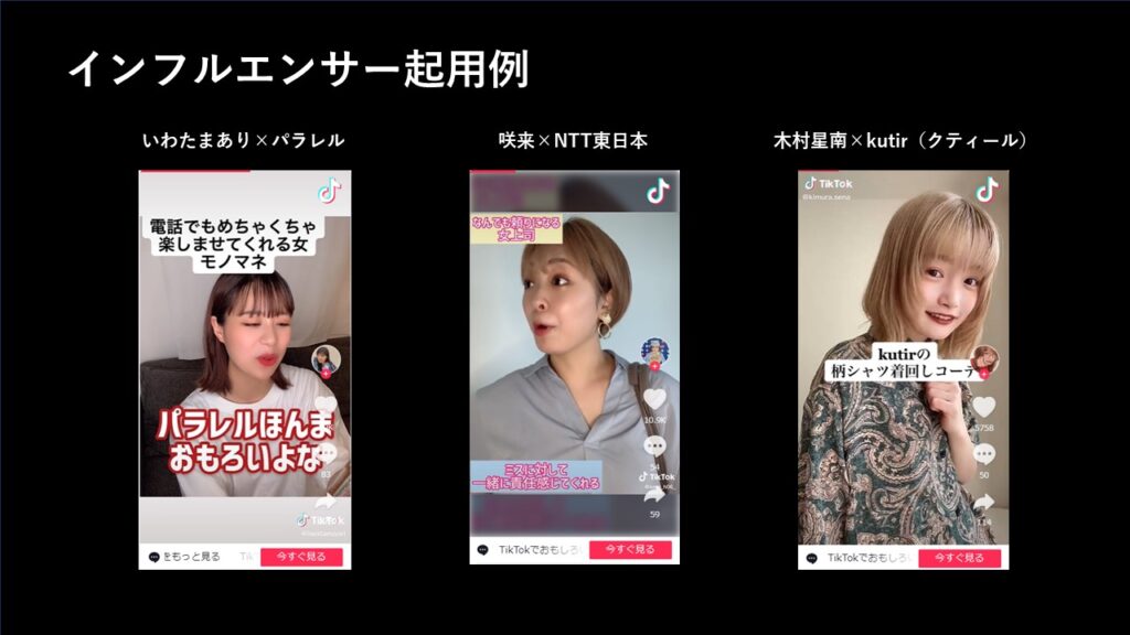 インフルエンサーマーケティングは、TikTok広告でも活用できます。たとえば、