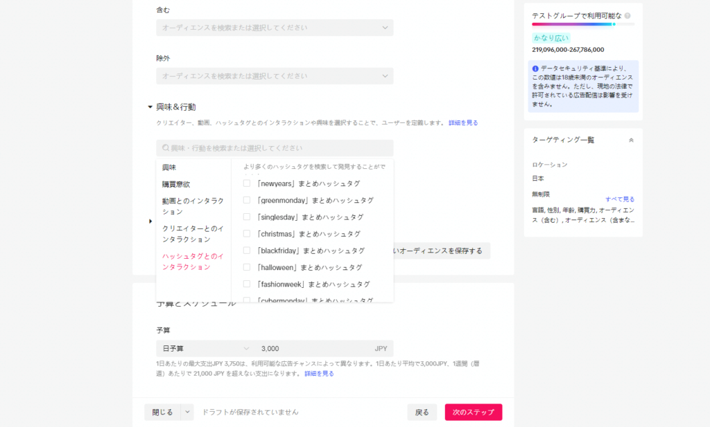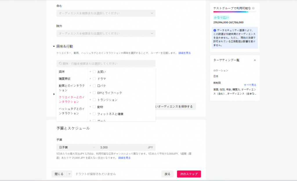 ただし、ターゲティングを絞りすぎると逆に効果が悪くなる可能性があります。動画インタラクションを設定する場合は、少し広めに設定するようにしましょう。