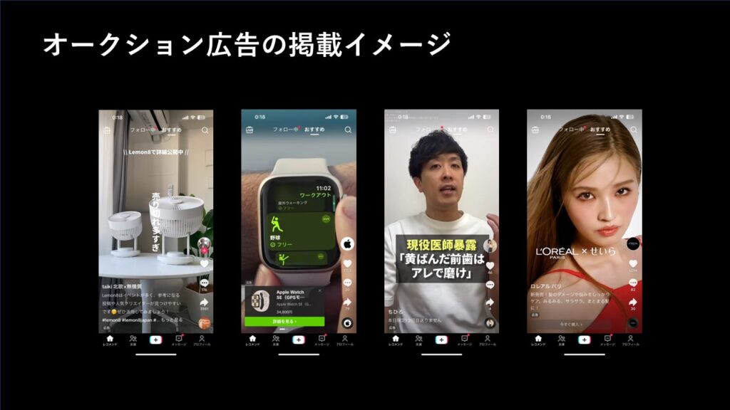 TikTokには、他のSNSと比較して広告を見てもらいやすい環境が整っているのも特徴です。