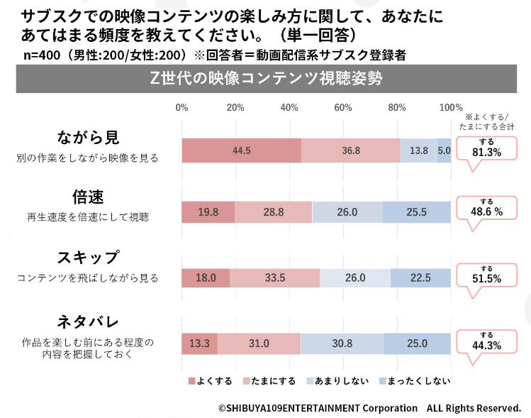 (※1)参照:SHIBUYA109 lab.「世代の映像コンテンツの楽しみ方に関する意識調査」